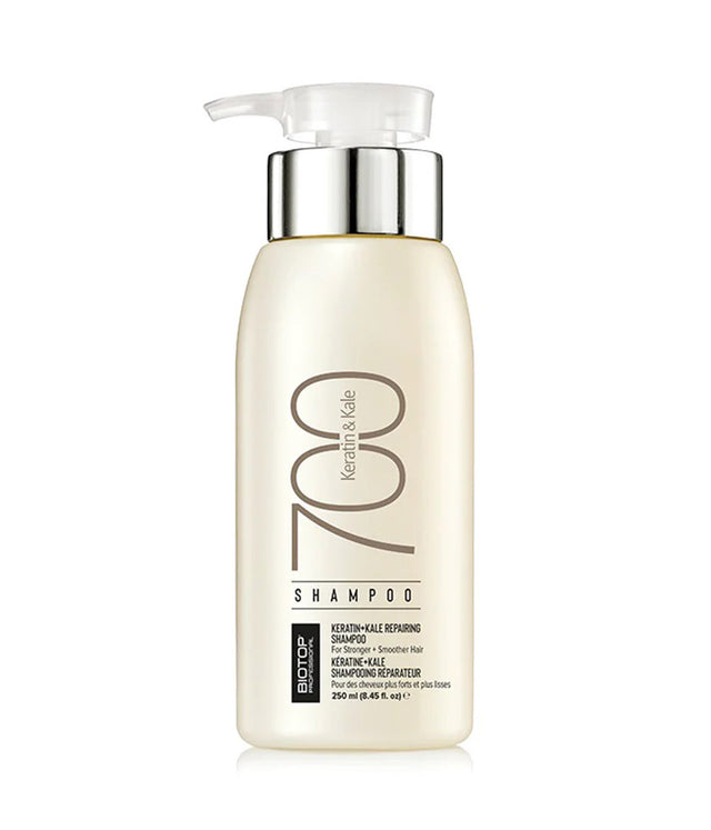 700 Keratin + Kale Shampoo repairs, smooths and strengthens damaged, coarse & frizzy hair textures. Infused with hair-building Keratin Protein and nourishing & calming Kale extract, 700 Shampoo infuses hair with strength and vitamins while gently cleansing away impurities. Hair is left feeling stronger, smoother, and more resilient.