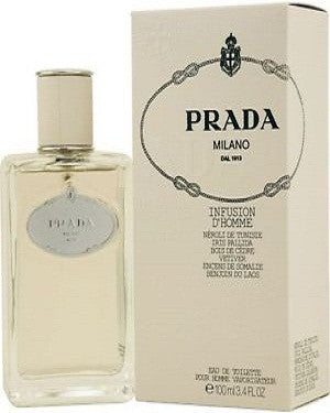 Prada Infusion D Homme echoes the design of vintage perfume bottles. Its understated, yet incredibly refined cut creates a sleek modern feel when handled. The elegant, smoke-gray color of the fragrance is visible through the clear glass bottle Prada Infusion D Homme includes notes of neroli from Tunisia, iris palida, vetiver, cedar, incense and benzoin.