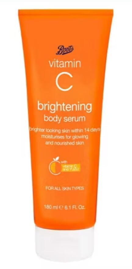 Transform your skincare routine with this innovative Vitamin C brightening body serum. Specially formulated with Vitamin C and Yuzu, this lightweight serum works to enhance your skin's natural radiance within just 14 days. The nourishing formula delivers deep moisturization while helping to achieve a more luminous complexion. Suitable for all skin types, this 6.1 fl oz serum glides on smoothly and absorbs quickly, leaving your skin feeling hydrated and looking revitalized. Perfect for daily use, this body serum helps maintain skin's moisture balance while promoting a brighter, more even-toned appearance. The convenient tube packaging makes application easy and mess-free. For best results, apply generously to clean skin and massage until fully absorbed. Experience the difference as this powerful serum helps transform dull, tired-looking skin into a more radiant, glowing complexion.