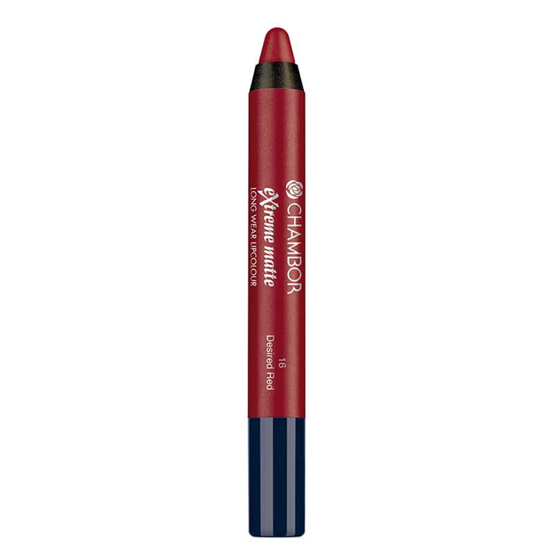 Chambor Extreme Wear Matte Long Wear Lip Color is an intensely soft and creamy textured lip crayon that provides a velvety matte finish. Its hydrating lightweight formula delivers pigment rich colour that does not dry out lips, provides a super long wear and is waterproof. Enriched with emollients with a combination of unique silicones it ensures a long lasting wear with seamless colour for hours.