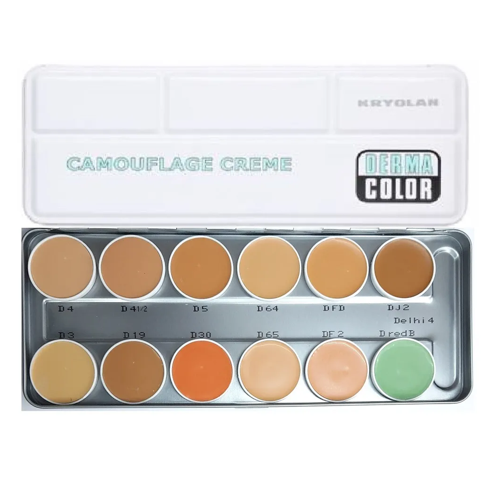 Dermacolor Camouflage Creme Palette is ideal for professional use. Dermacolor Camouflage Creme is an especially highly pigmented make-up which is designed to correct and cover skin disfigurements, discolorations and tattoos. Dermacolor Camouflage Creme is especially suitable for face and neck. With proper use of the Dermacolor Camouflage System skin abnormalities can be easily corrected. Once Dermacolor Camouflage Creme is fixed using Fixing Powder and Fixing Spray from Dermacolor it will be waterproof and protects the skin against damaging UV radiation. Dermacolor Camouflage could last even under extreme conditions like swimming, heat and physical strain. Dermacolor Camouflage Creme is available in an extensive range of shades and those are intermixable which gives the make-up a natural appearance when applied correctly. Those palettes can be refilled individually by using Dermacolor Refills.