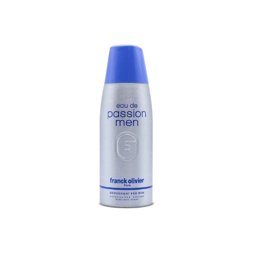 Experience Frank Olivier's Eau de Passion for Men Deodorant featuring a masculine scent. Long lasting for up to 24 hours, this deodorant offers odor and sweat protection with every spray. Enjoy a fresh, all-day feeling with every use. 250mL.