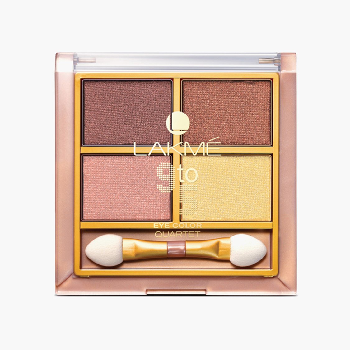 Your perfect office eye stylist is here! The versatile colors in the Lakmé 9 To 5Eye Quartet and the high-intensity powders give your eyes a defined finish. The radiant color and shimmer particles shape and highlight your eyes to give you that professional edge. Use the lighter shades for office wear and darker shades for your night look. The special applicator makes it very easy to do your own eyes and you can mix the shades to create new looks everyday! Buy the Lakmé 9 To 5Eye Quartet, right away! Lakmé 9 To 5Eye Quartet has a versatile palette of eye shadows developed specially for work. Lakmé 9 To 5Eye Quartet is packed with key features like: High intensity powders with delicate hints of shimmer, Smooth and silken texture, 4 eye shadows in 1 palette, Comes with a sponge applicator, Available in 4 palettes. How to apply: Using the sponge applicator, sweep the shadow from the palette and then apply it on the crease of your eyelid. Pro-Tip: Once the tip gets a little blunt it’s great for experimenting with bold, smokey looks. For finer strokes sharpen with Lakmé Dual Sharpener. Lakmé 9 To 5Eye Quartet goes well with 9to5 weightless mousse foundation as base, 9to5 matte lipsticks and Eyeconic kajal for an enhanced look.