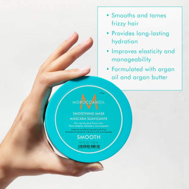 Use this highly concentrated argan butter hair mask to smooth and tame hair for silky, frizz-free results. Moroccanoil Smoothing Mask is infused with argan butter, argan oil and coconut-derived fatty acids to deeply hydrate and intensely nourish, leaving you with soft, smooth hair that is more manageable. Provides long-lasting conditioning while improving elasticity.