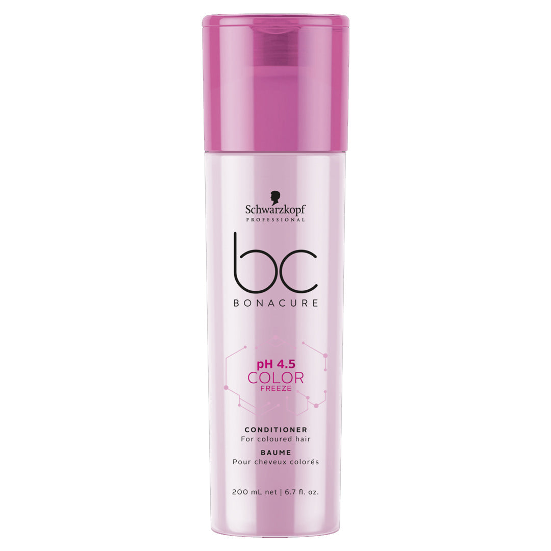 Schwarzkopf Professional BC Bonacure Color Freeze Conditioner is a rich creamy conditioner for color-treated hair. This high performance formula with pH 4.5 balancer technology instantly tightens the inner hair structure to deeply freeze colour pigments into the matrix, while the lightweight cationic actives deposit on the outer layer close the cuticle. Hair is closer than ever to 0 fade, colour appearing as vibrant as on day one.