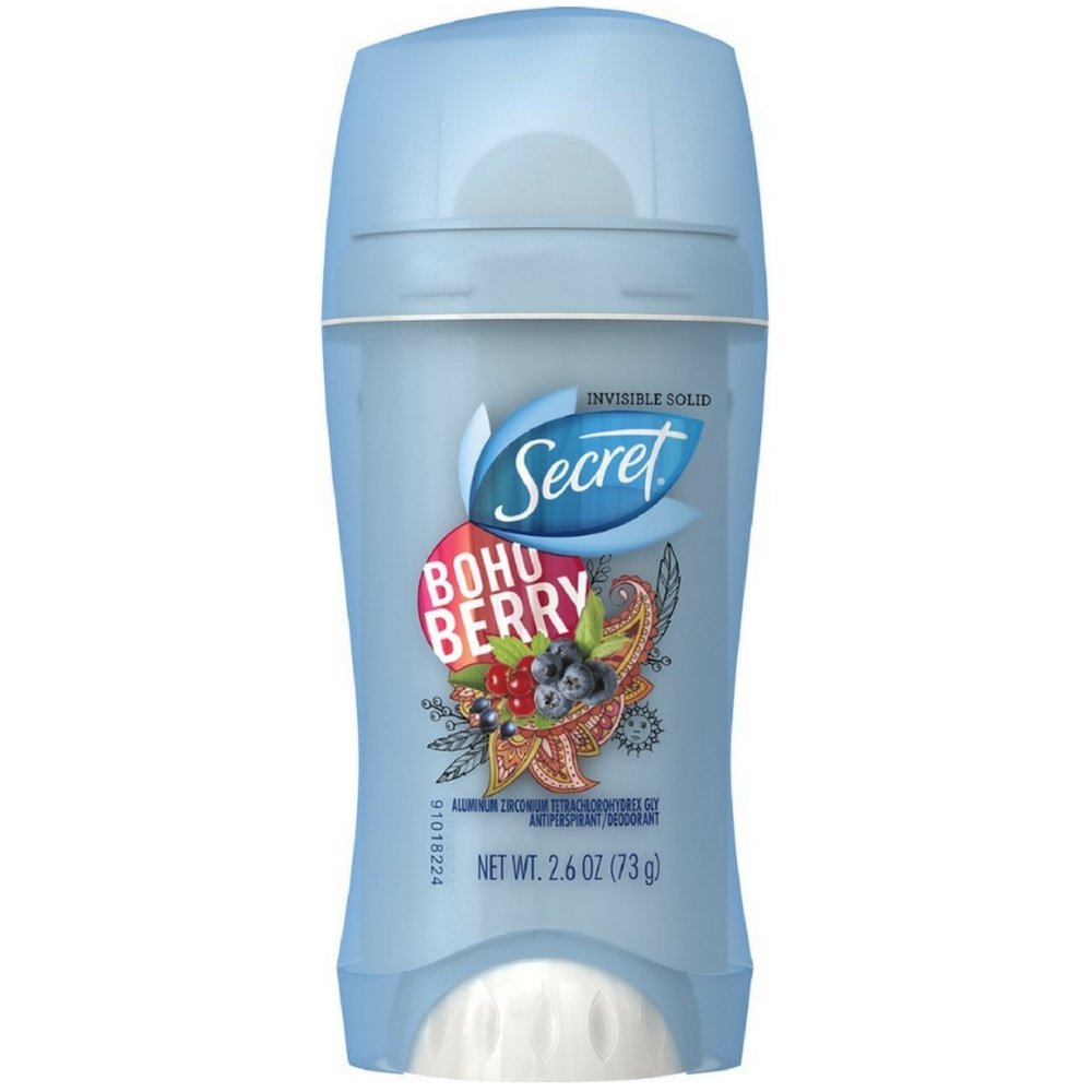 Secret Boho Berry anti-perspirant deodorant invisible solid glides on clear to provide long-lasting sweat and odor protection...