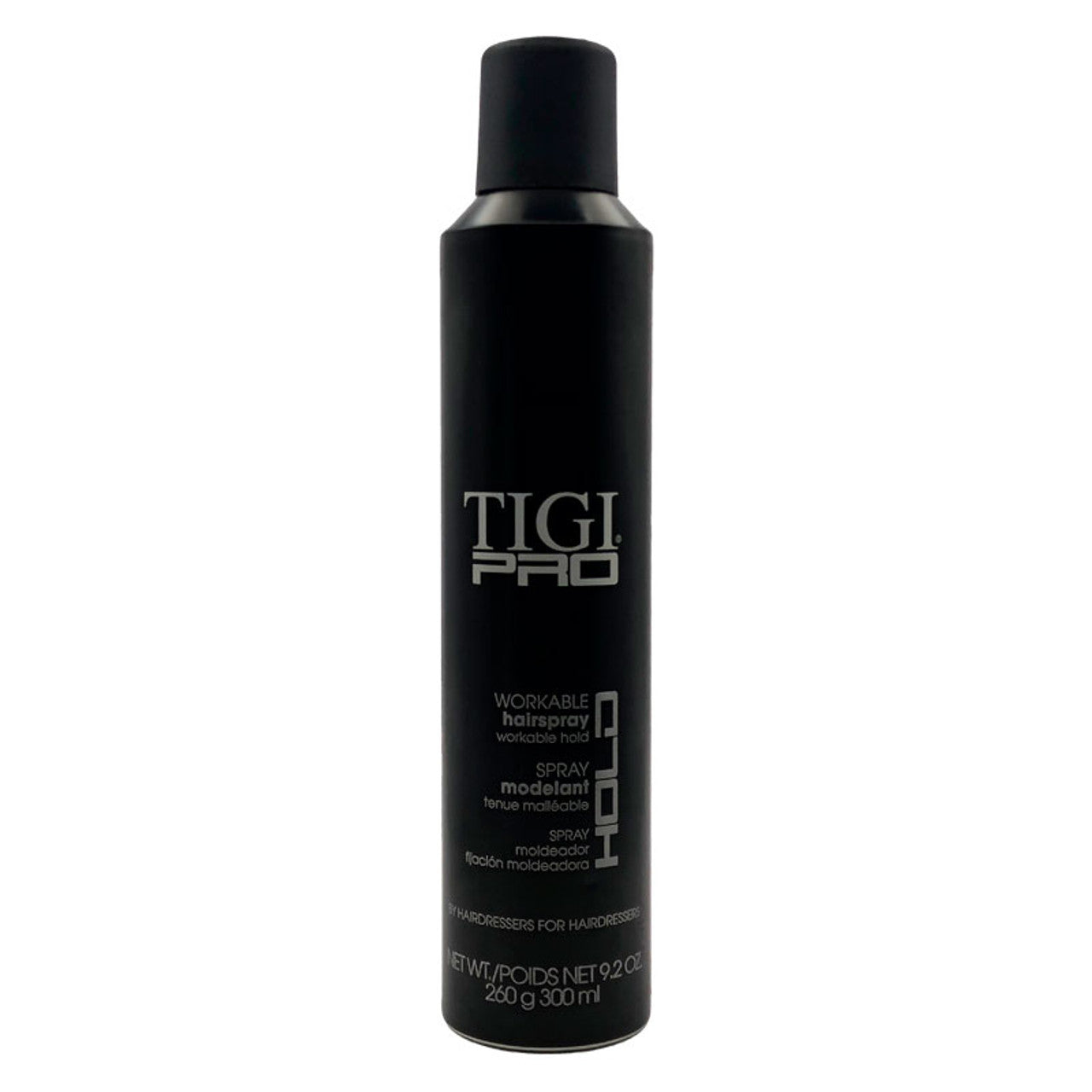 Introducing the TIGI Pro Workable Hairspray, a versatile aerosol hairspray that delivers a fine mist for flawless coverage. This innovative formula safeguards your style from humidity while adding a soft, natural shine. Unlike other hairsprays, it won't cake or leave your hair feeling crusty, ensuring a comfortable and touchable finish.