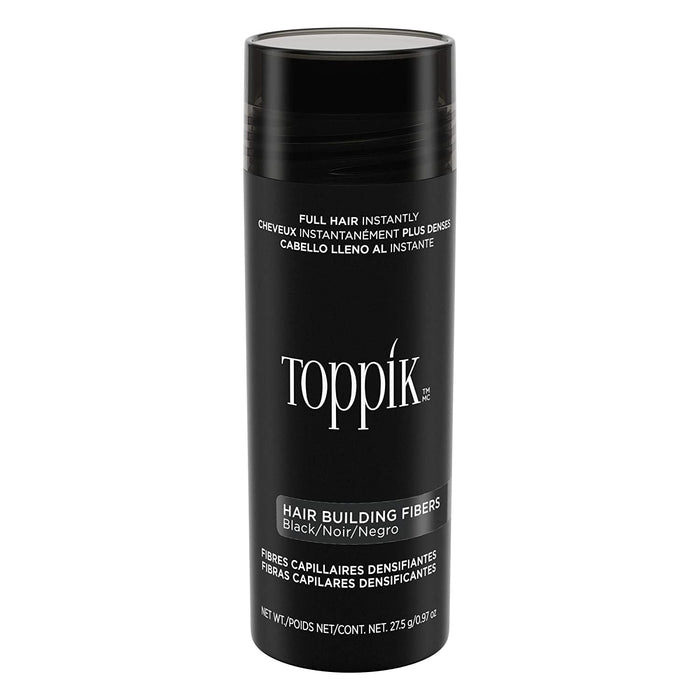 Toppik Hair Building Fibers, made of colored keratin protein, blend undetectably with existing hair strands to instantly create the appearance of naturally thick, full hair.