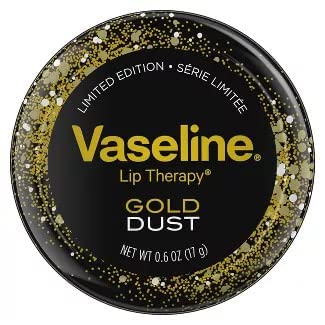 Vaseline Lip Therapy Gold Dust Limited Edition Lip Balm Tin helps to lock in moisture for beautiful, healthy lips Peach-tinted lip balm with golden sparkles, scented with white pear & chamomile For Shimmering, Precious Lips Lip Therapy tins give lips a natural, glossy shine
